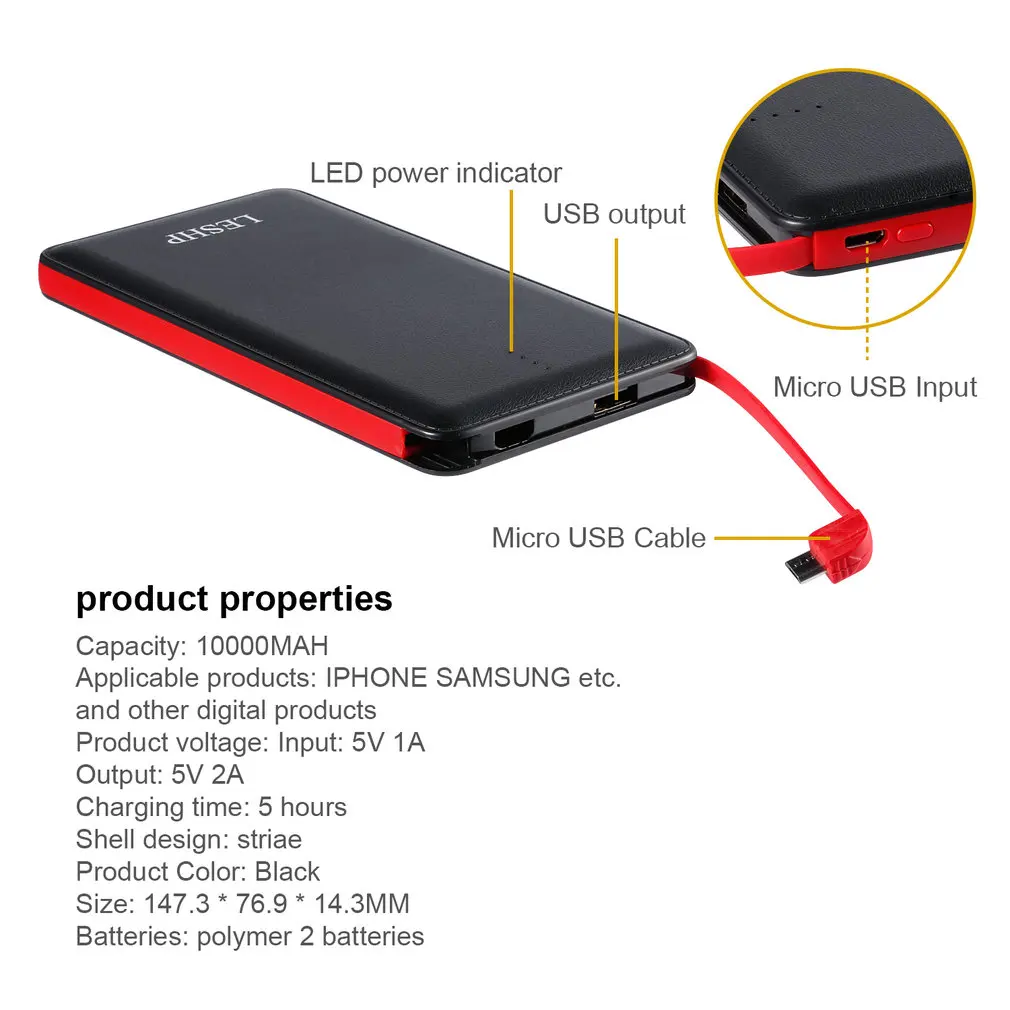 - Product name : LESHP Super-high 10000mAh Capacity 10W Lightweight Portable Fast-charging 4-Port Power Bank For Iph