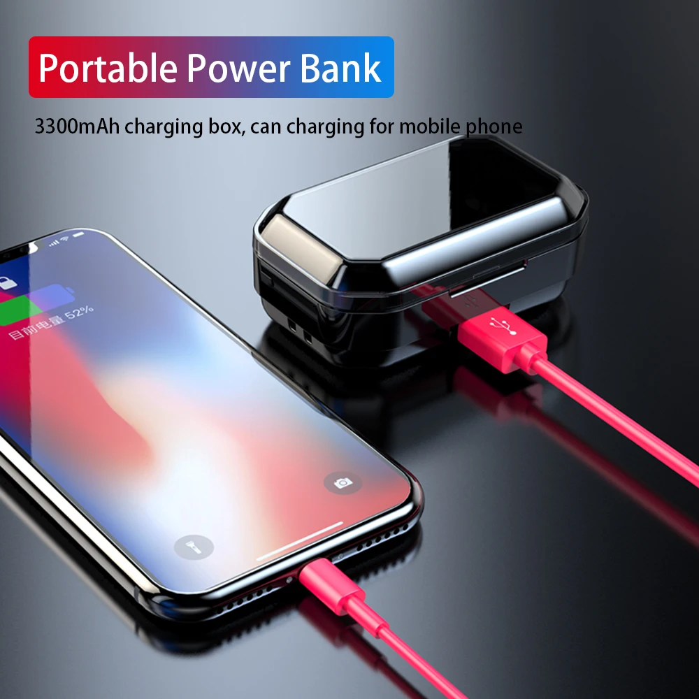 Cigfun Q67 TWS Wireless Bluetooth Earphone With Mic Handsfree Sports IPX5 Waterproof Earphones Earbuds LED Power Bank Headset : Click Here